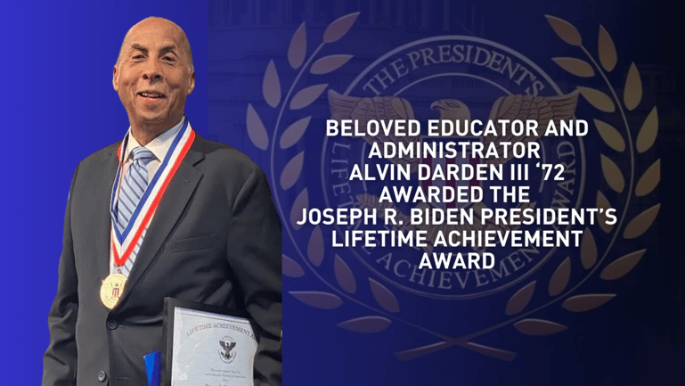 In a ceremony at the historic Ebenezer Baptist Church, beloved educator and retired Morehouse College administrator Alvin Darden III '72 was recently awarded the Joseph R. Biden President's Lifetime Achievement Award for his exemplary career of service to others and his contributions to building and strengthening the Atlanta community.
