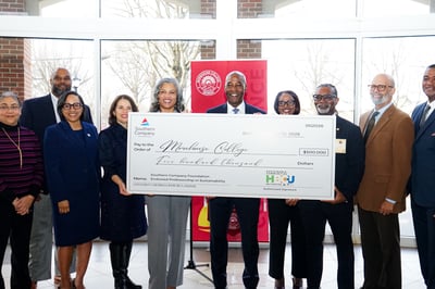 In addition to the scholarly showcase, the program also marked a significant institutional milestone. Representatives from the Southern Company Foundation and the United Negro College Fund (UNCF) joined the celebration for the official check presentation recognizing Morehouse’s participation in the Historically Black Colleges and Universities Sustainable Communities Initiative (HBCU SCI).
